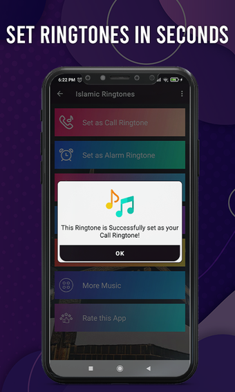 ด้วยเสียงริงโทนอิสลาม: Caller Tune คุณสามารถปรับแต่งโทรศัพท์ของคุณด้วยเสียงริงโทนและข้อความอิสลาม แอปยังช่วยให้คุณสามารถตั้งค่าเสียงริงโทนต่างๆ สำหรับการปลุกนอน การโทรเข้า และการแจ้งเตือน คุณยังสามารถใช้แอปเป็นแอปเสียงริงโทนปลุกนอนอิสลามเพื่อตั้งค่างานประจำวันของคุณ แอปจะอัปเดตเสียงริงโทนอิสลามล่าสุดจากอินเดีย ปากีสถาน ตุรกี และอาหรับ